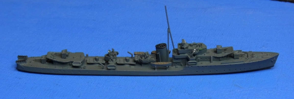 4,艦首形状を改正した「S級」:今回入手したのは「S級」の代表的なタイプではなく、艦首部の主砲を試験的に開発中だった仰角80度まで射撃可能な11.4cm(4.5インチ)連装砲を搭載した「サべージ」のモデル