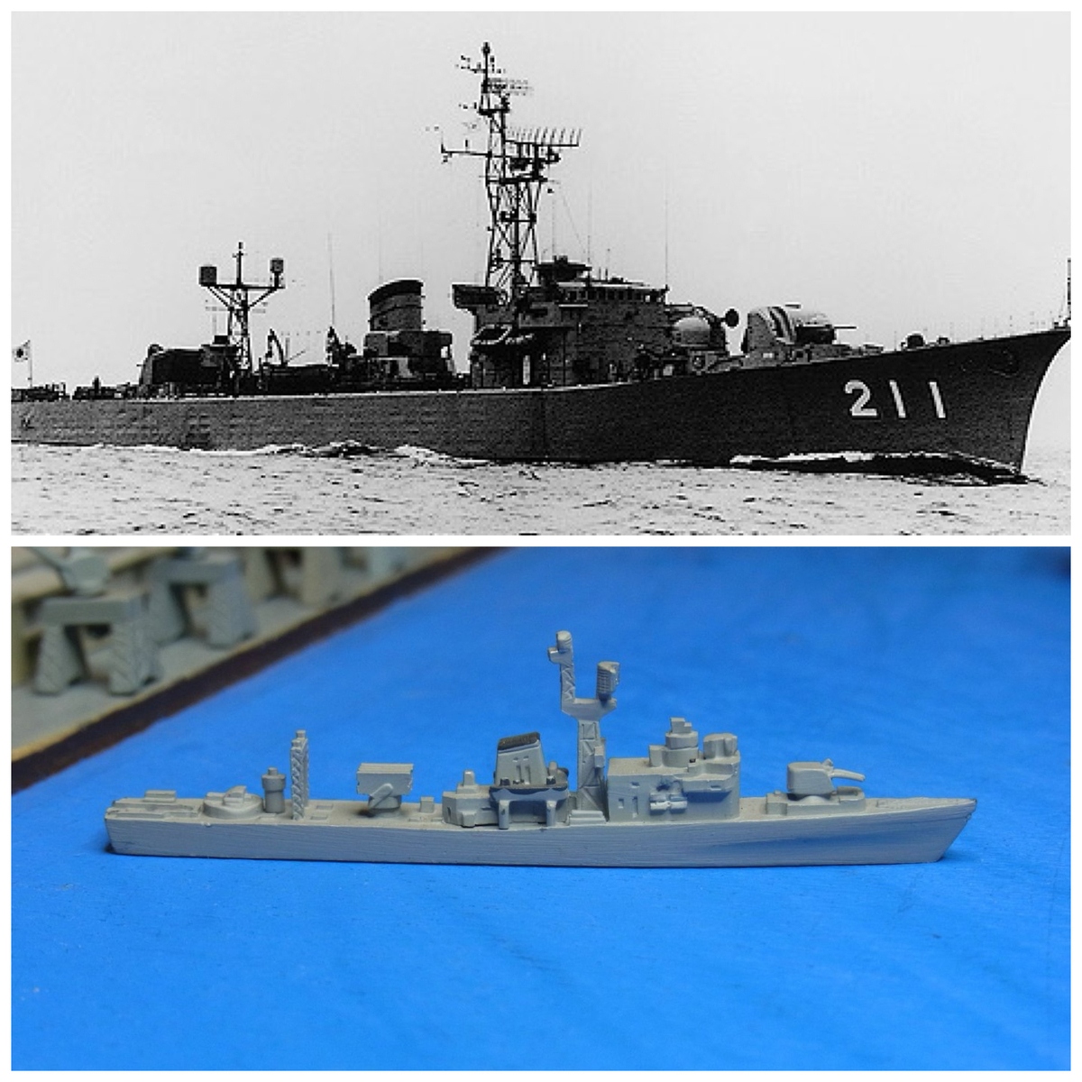 (「いすず級」護衛艦のネームシップ「いすず:DE-211」就役時の概観:上掲のHai製「ちくご」のモデルをベースにかなり大幅に手を入れています)