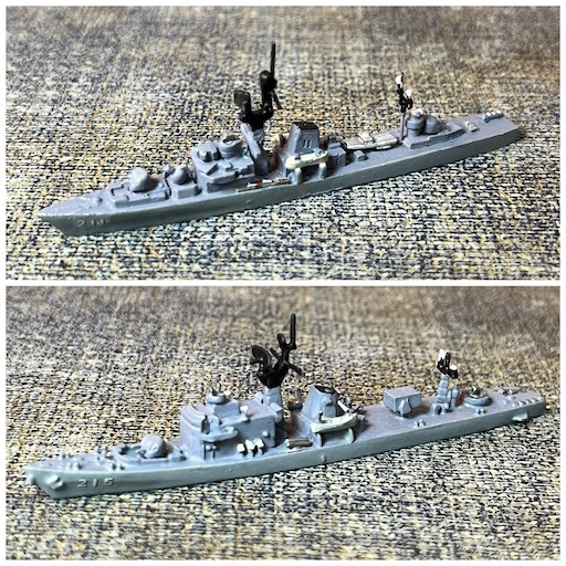手元には幸いNeptun製のかなり精度のいいモデルが複数あります。再就役後、同艦は最初は無兵装の練習艦的な役割、その後対潜装備を搭載し、長く新装備の実験艦的な役割についていたようで、武装に関しては特に大きな問題はなさそうです。